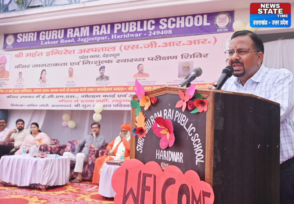 हरिद्वार। श्री गुरु राम राय पब्लिक स्कूल जगजीतपुर में श्री महंत इन्दिरेश अस्पताल देहरादून की ओर से आयोजित कैंसर जागरूकता एवं निशुल्क स्वास्थ्य शिविर का जिलाधिकारी कर्मेंन्द्र सिंह,महापौर किरण जैसल,विधायक आदेश चौहान और महामंडलेश्वर शिवानंद महाराज ने संयुक्त रूप से दीप जलाकर शुभारंभ किया।कार्यकम शुभारभ के अवसर पर स्कूल के छात्र छात्राओं द्वार स्वागत गीत और सरस्वती वंदना पर प्रस्तुति दी गई।