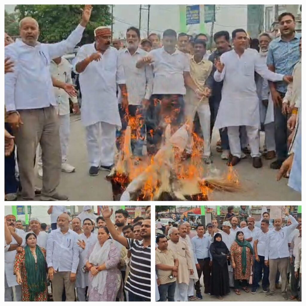 कांग्रेस के उपाध्यक्ष राहुल गाँधी के द्वारा चुनाव आयोग पर गंभीर आरोप लगाते हुए जो बड़ा खुलासा किया है जिसको लेकर भाजपा राहुल गाँधी को घेरने का काम कर रही है। वहीं आज रुड़की में कांग्रेस महानगर के अध्यक्ष राजेंद्र चौधरी ने चन्द्रशेखर चौक पर भारतीय चुनाव आयोग का पुतला फूँकते हुए कहा कि इलैक्शन कमीशन द्वारा किए गए घोटाले के चलते भारतीय जनता पार्टी ने इलैक्शन जीतने का काम किया है। जिसको लेकर आज कांग्रेस पार्टी में भारी विरोध है। और आज उन्होंने इन्ही मुद्दों को लेकर चुनाव आयोग का पुतला दहन किया है। वहीं उन्होंने कहा कि भारतीय जनता पार्टी की शह पर ही चुनाव आयोग काम कर रहा है जो देश के लिए बहुत ही घातक सिद्ध हो रहा है।